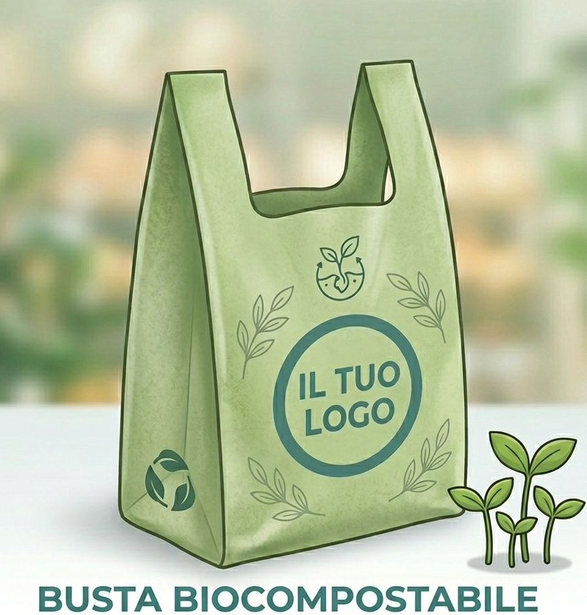 buste biocompostabili, per farmacie o supermercati;