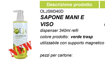 • Sapone mani viso "LJA" Essenza: olio di oliva - 340ml. 20 pz/ct (072828)