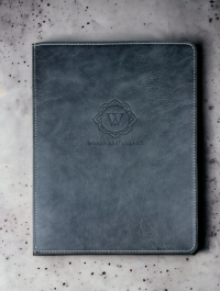 Menù in tessuto tecnico effetto pelle, a vite o con elastico. Personalizzabile.
