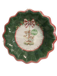 Piatto fondo in cartoncino cm 24 Natale colore verde Santa Carousel pezzi 8 a confezione