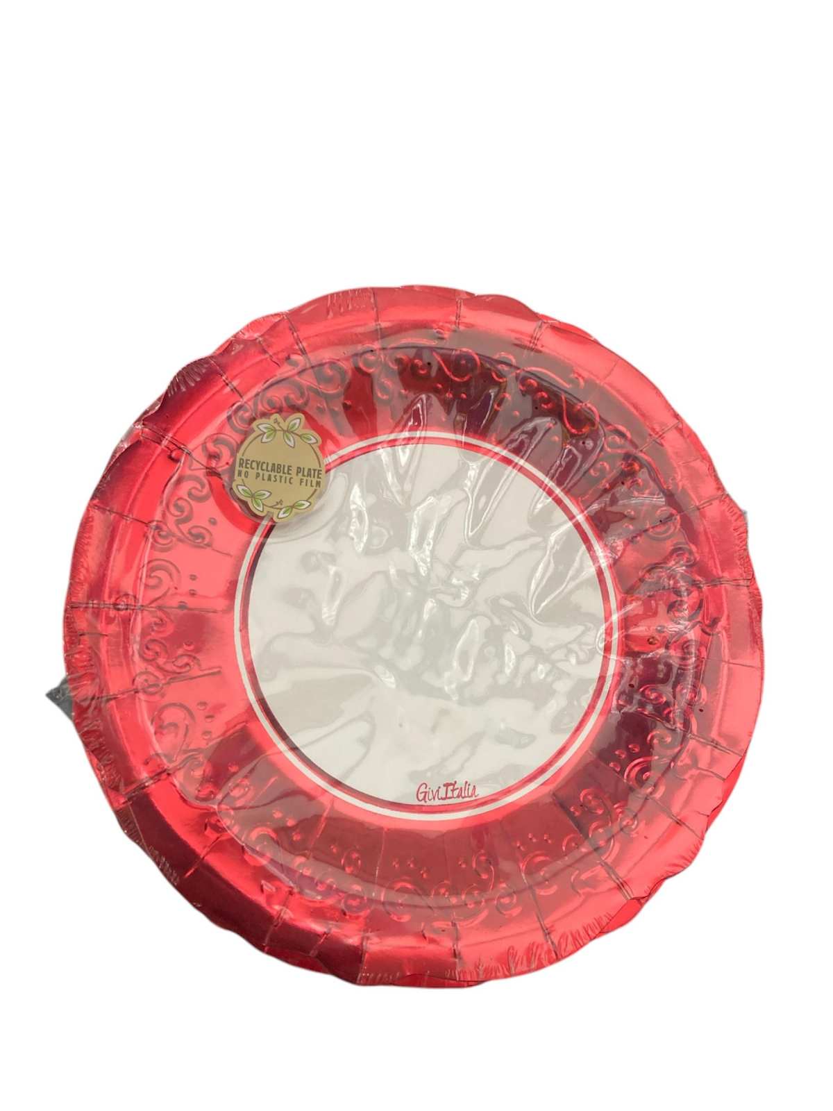 Piatto piano in cartoncino cm 27 Liberty bianco Bordo rosso pezzi 8 a confezione