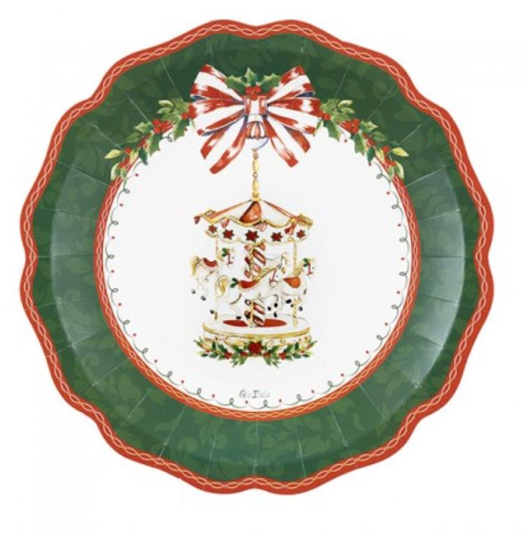 Piatto piano in cartoncino cm 27 Santa Carousel pezzi 8 a confezione